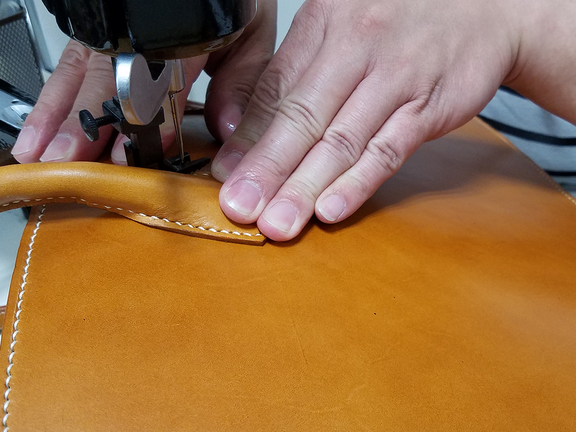 K2鞄工房は、完全受注制。革を漉くことから縫製まで、すべて手づくり。