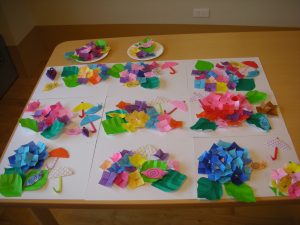 完成した紫陽花は色とりどりでとても綺麗でした。