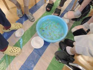 うちわ作りや、金魚すくいを皆で行い、スタッフによるダンスの披露も行いました。